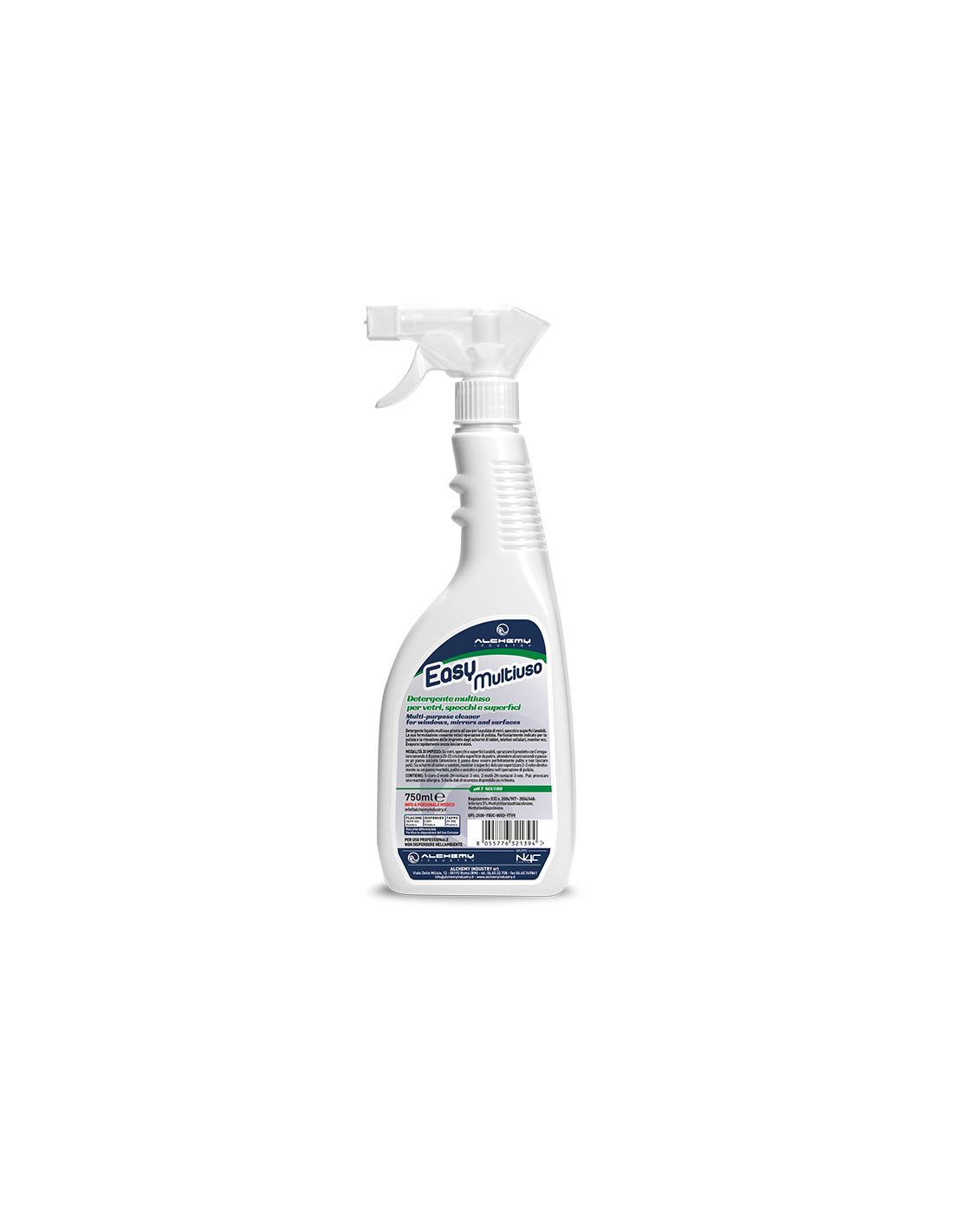 Detergente liquido multiuso pronto all’uso per la pulizia di vetri, specchi e superfici lavabili. La sua formulazione consente veloci operazioni di pulizia. Particolarmente indicato per la pulizia e la rimozione delle impronte dagli schermi di tablet, telefoni cellulari, monitor ecc. Evapora rapidamente senza lasciare aloni.